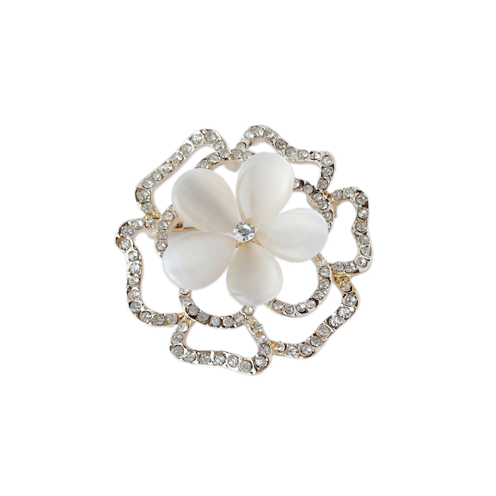 - Brooch Materials: Crystals, cat's eye stone petals, alloy