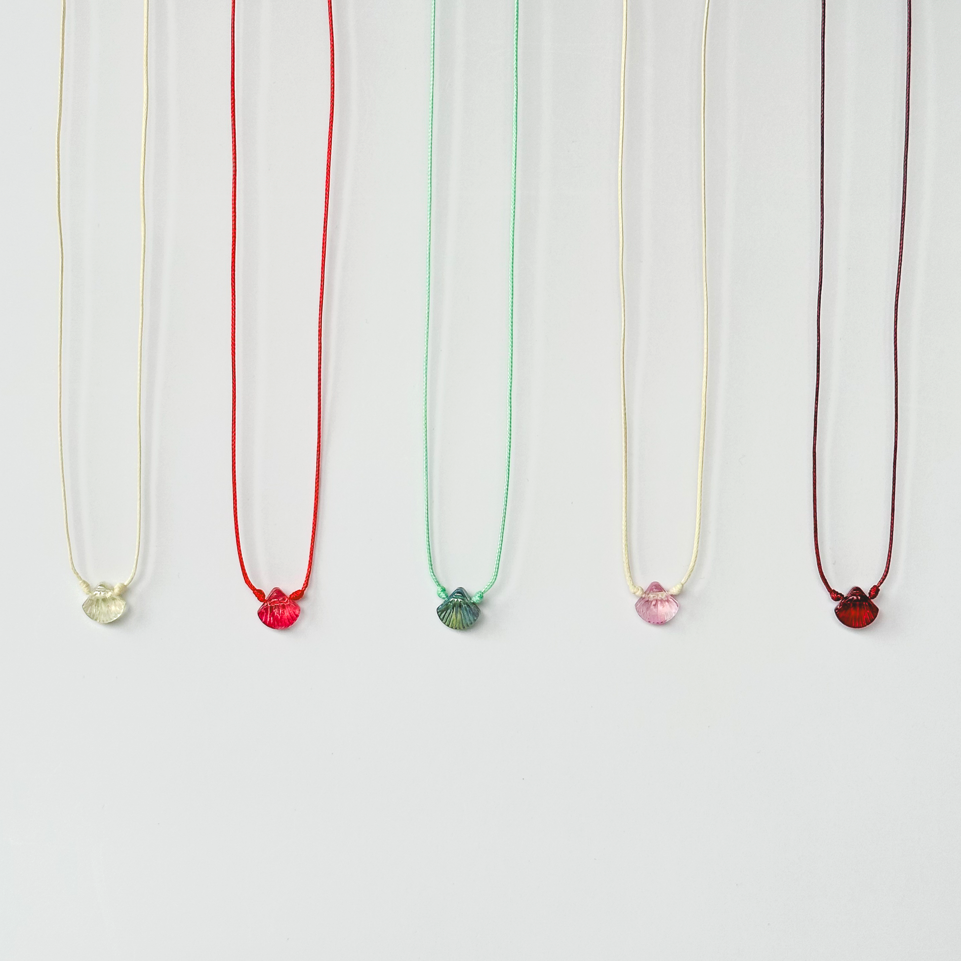 - Materials: Ombre Czech glass scallop shell charm, waxed polyester cord