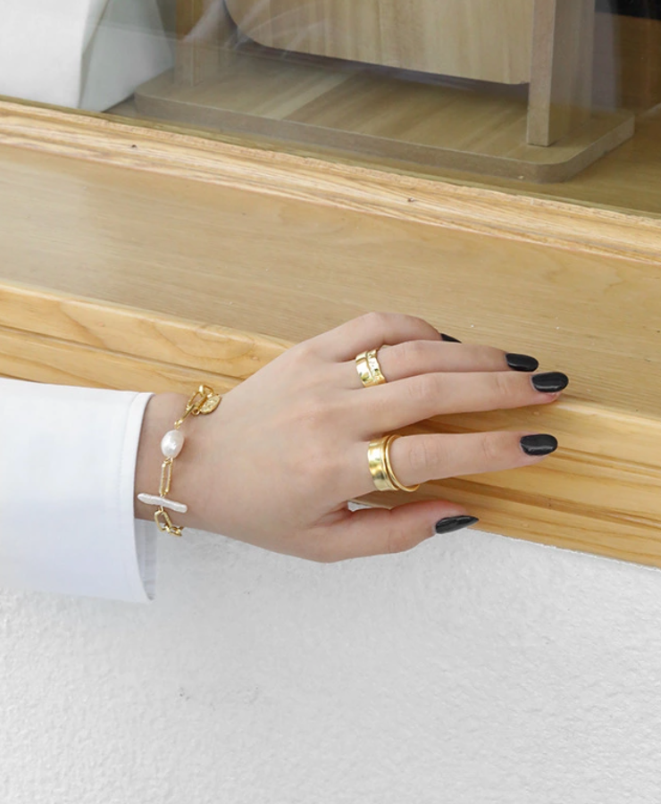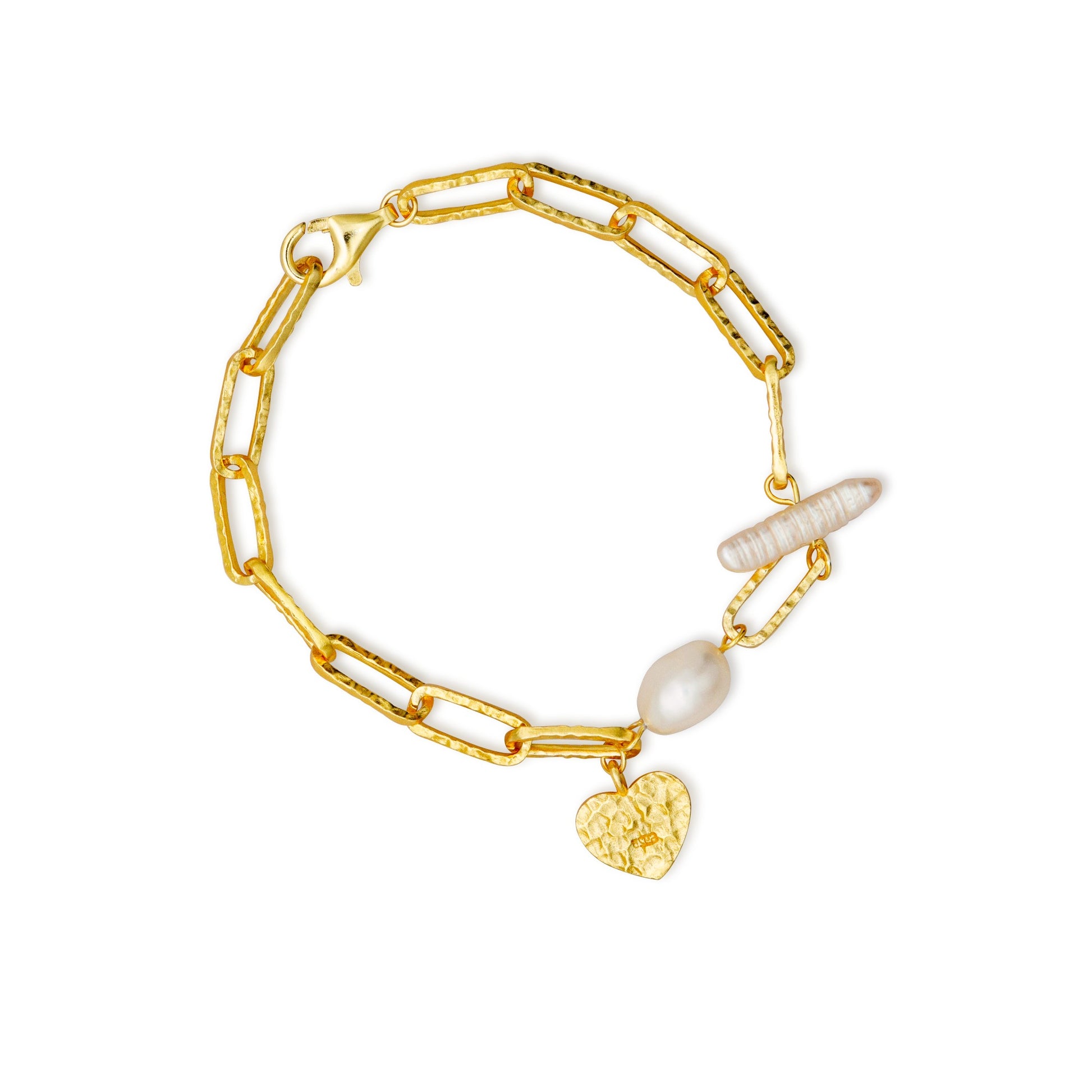 - 18K gold plated Sterling Silver freshwater baroque pearl & heart charm bracelet.