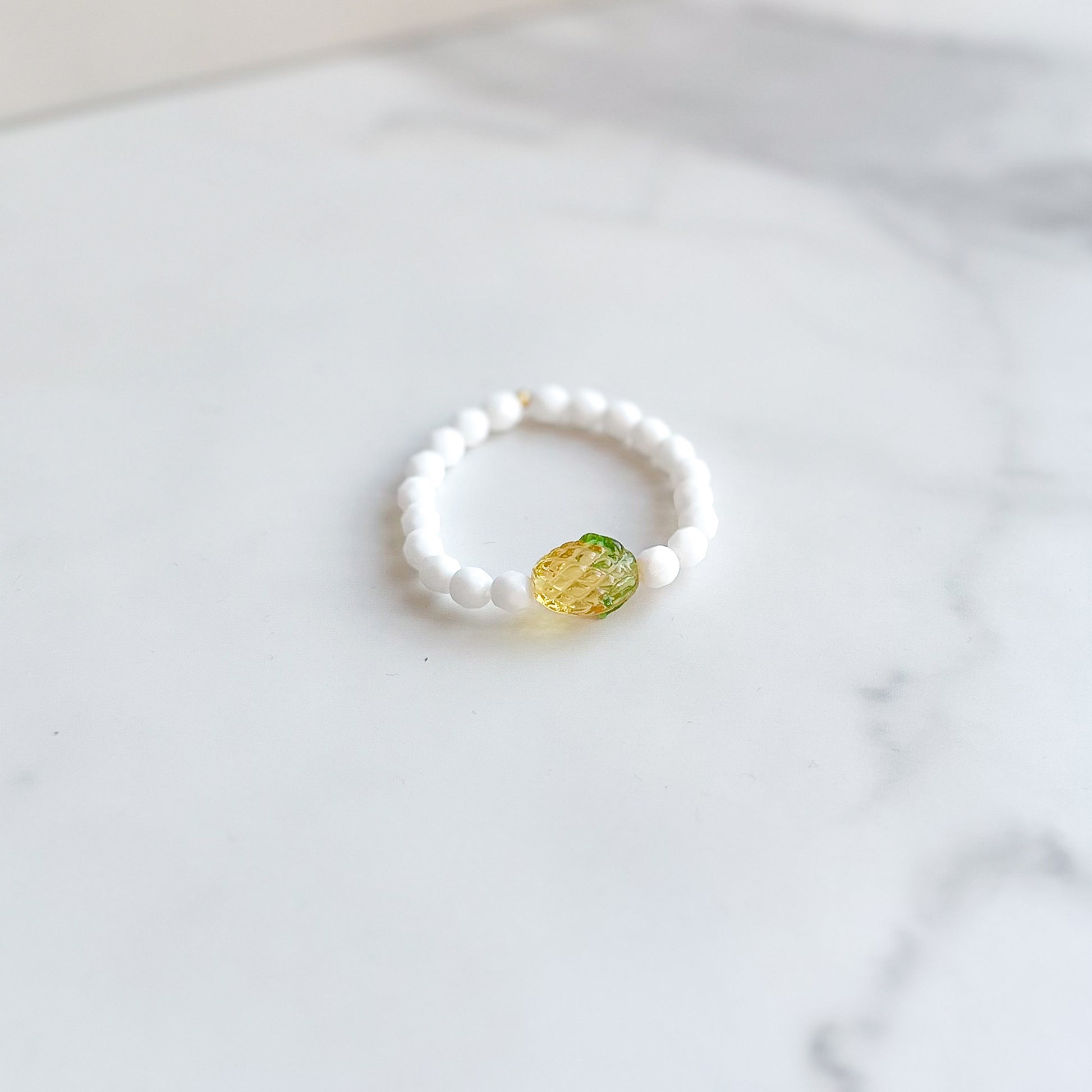 - Handmade stretch bracelet composed of faceted Czech glass beads, accented with a glass pineapple charm