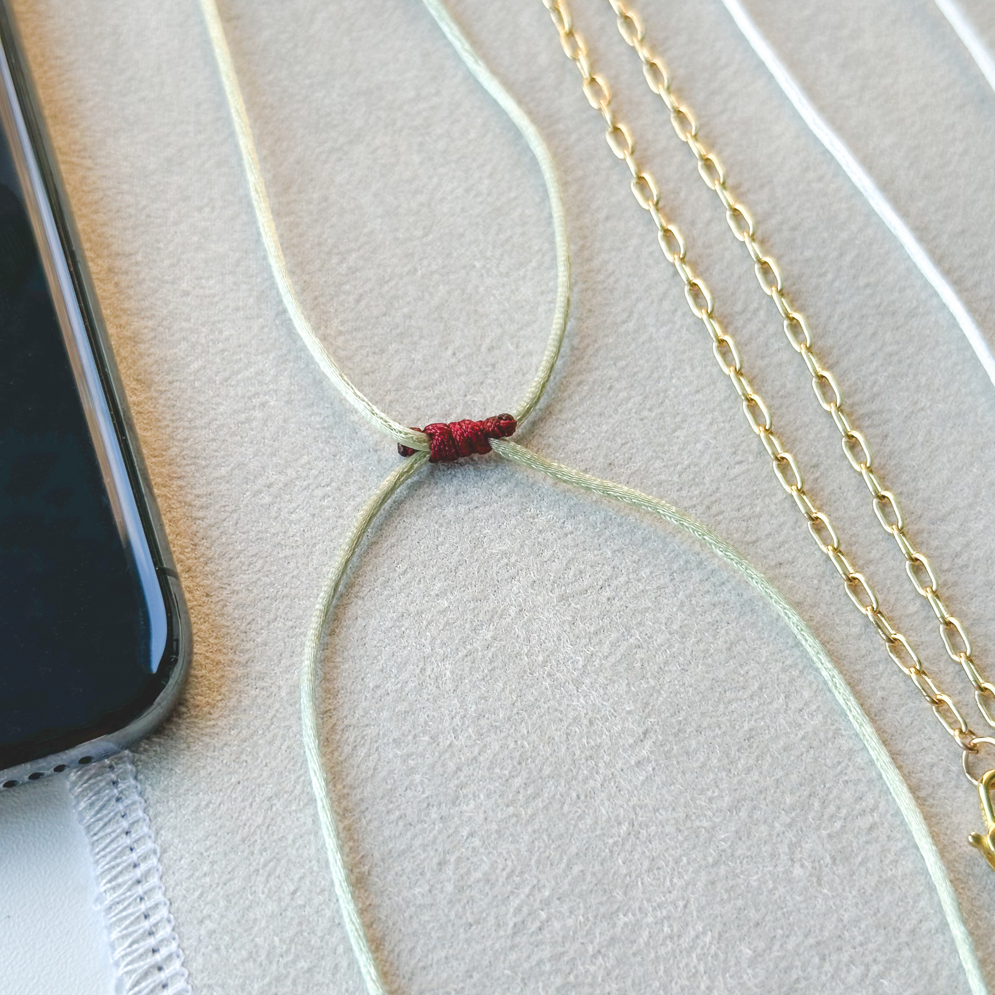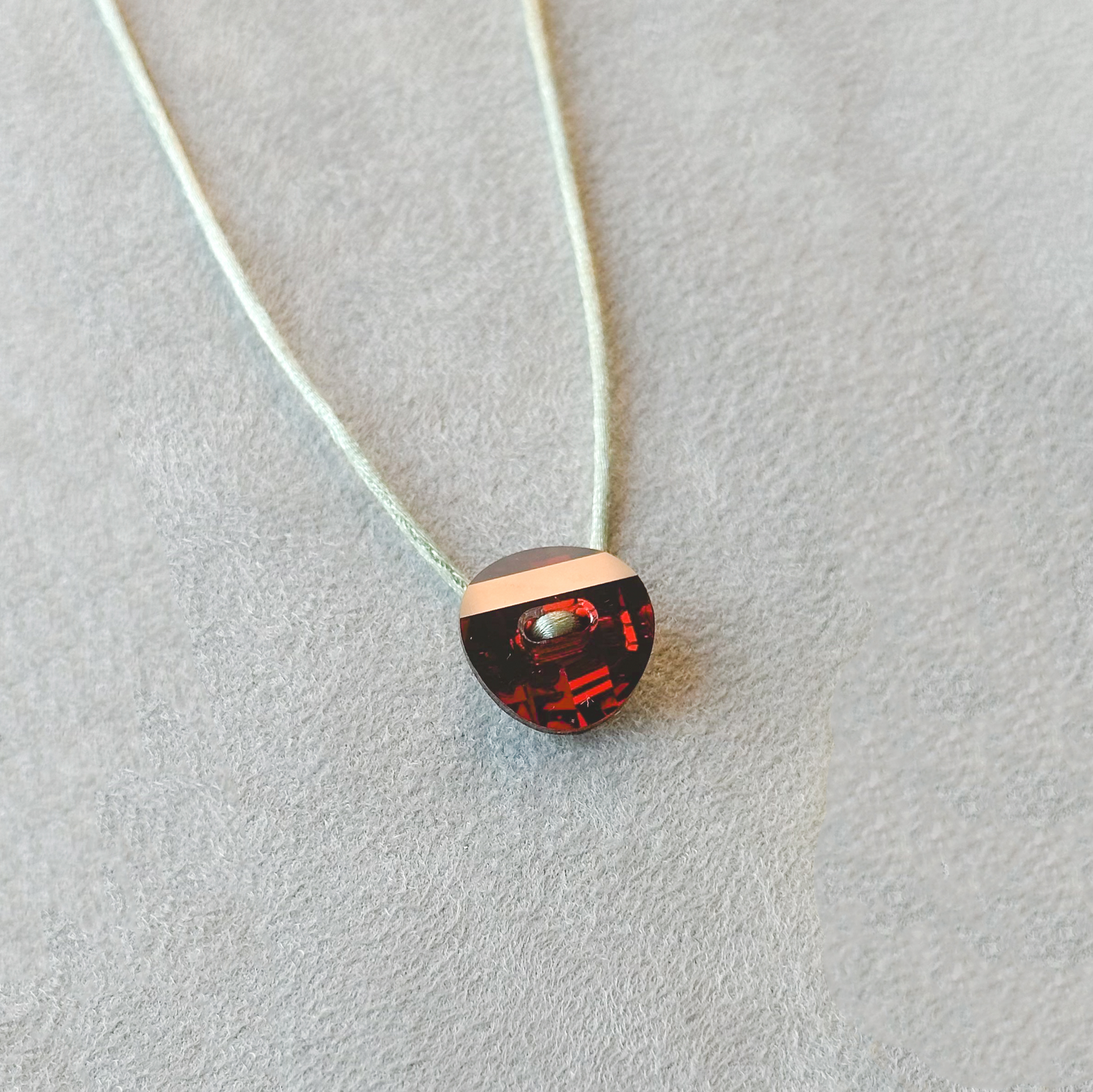 - Materials: Vintage Swarovski crystal button, satin nylon cord, waxed polyester cord, gold plated component