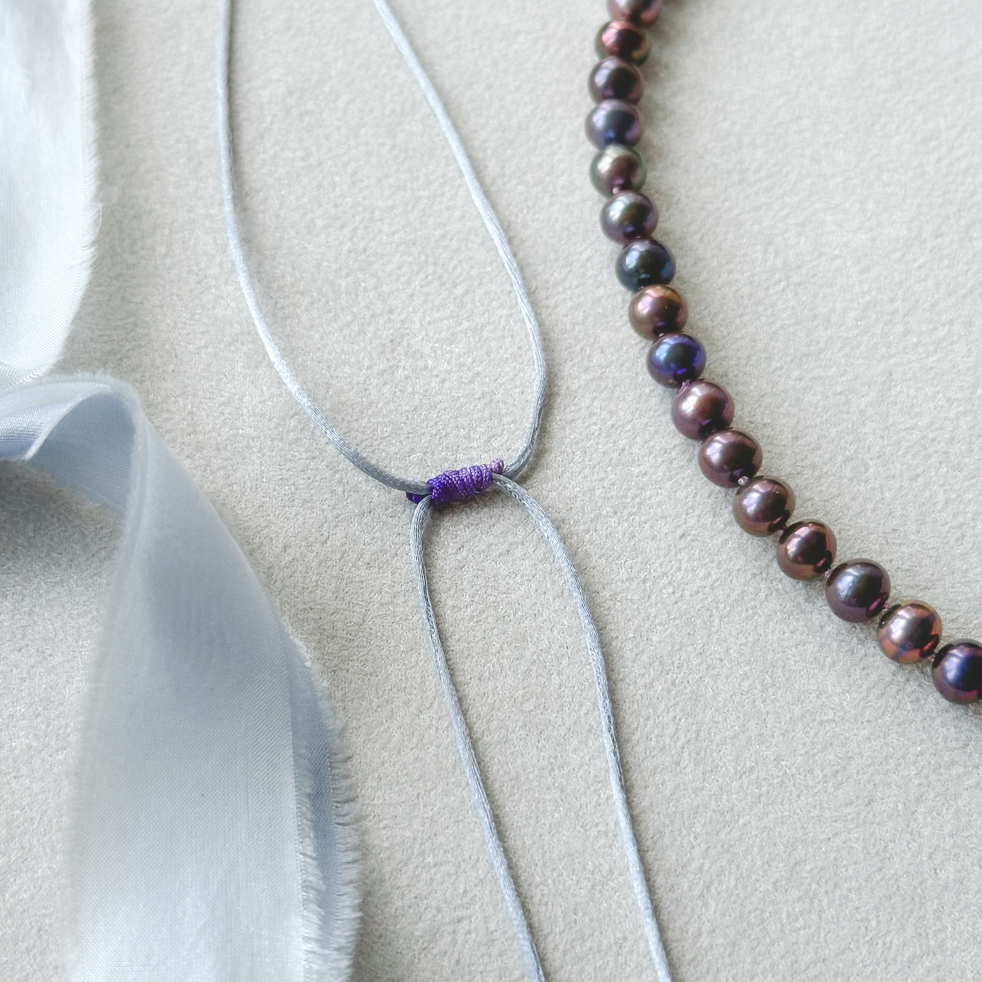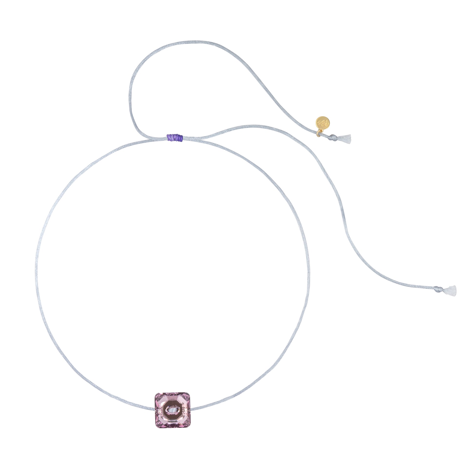 - Materials: Vintage Swarovski crystal button, satin nylon cord, waxed polyester cord, gold plated component