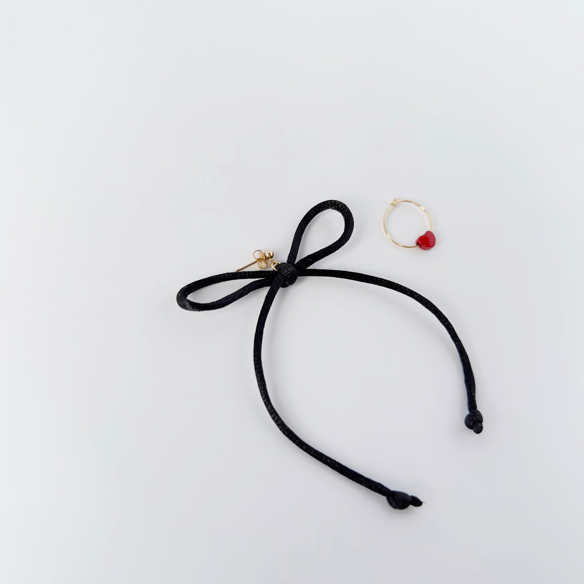 - Materials: Mini brass heart charm, satin nylon cord, gold filled components