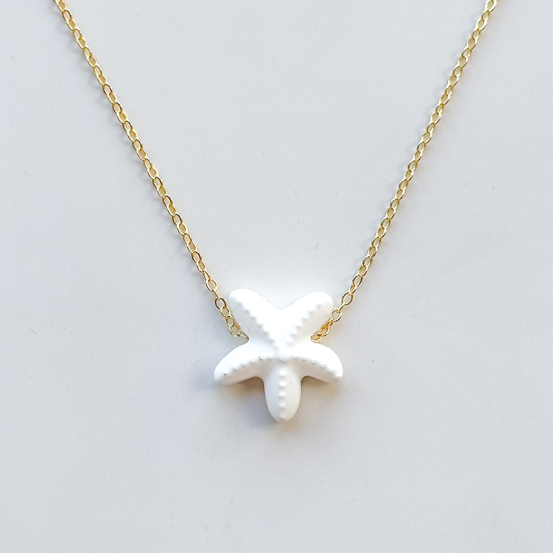 - Gold-filled cable chain necklace with a ceramic starfish charm