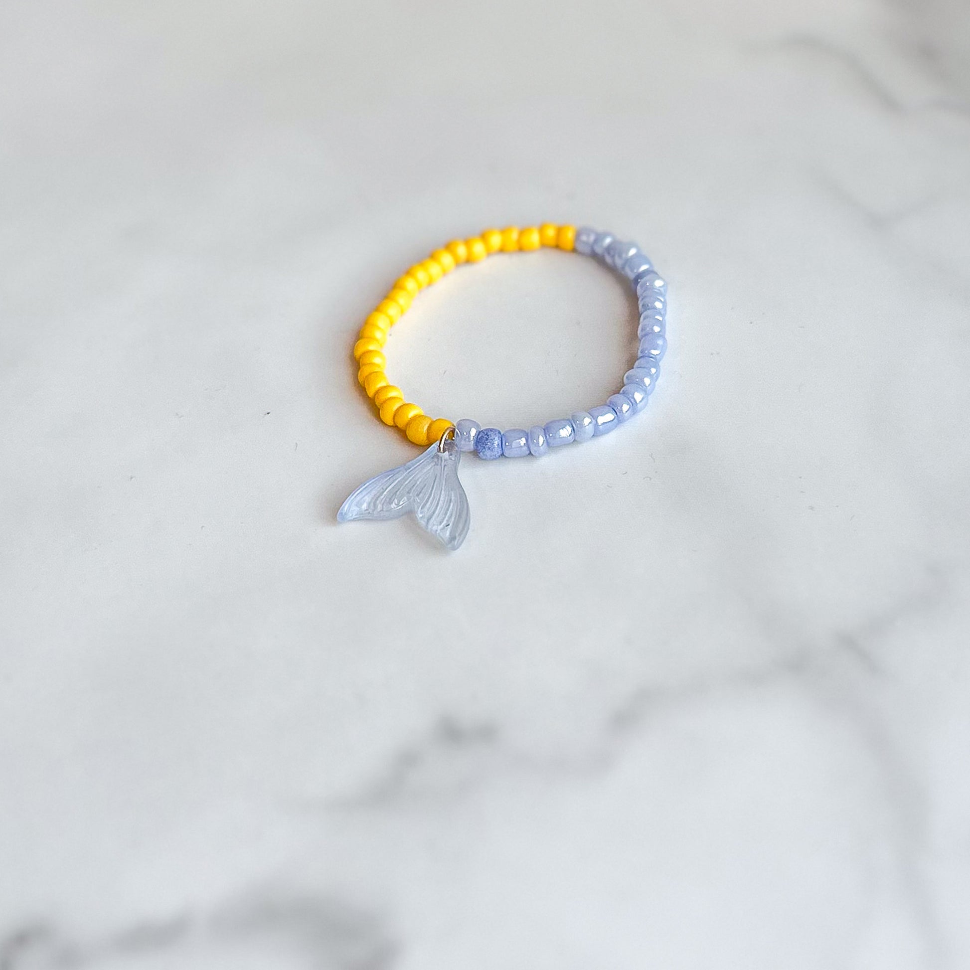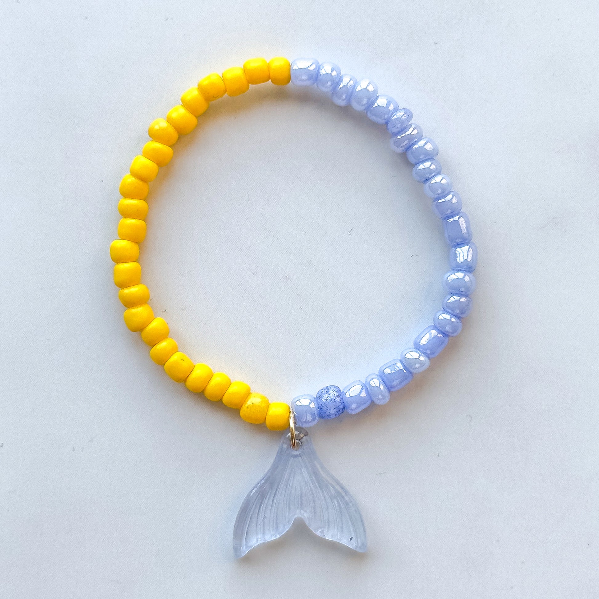 - Handmade glass seed beaded stretch bracelet, accented with a glass mermaid tail charm