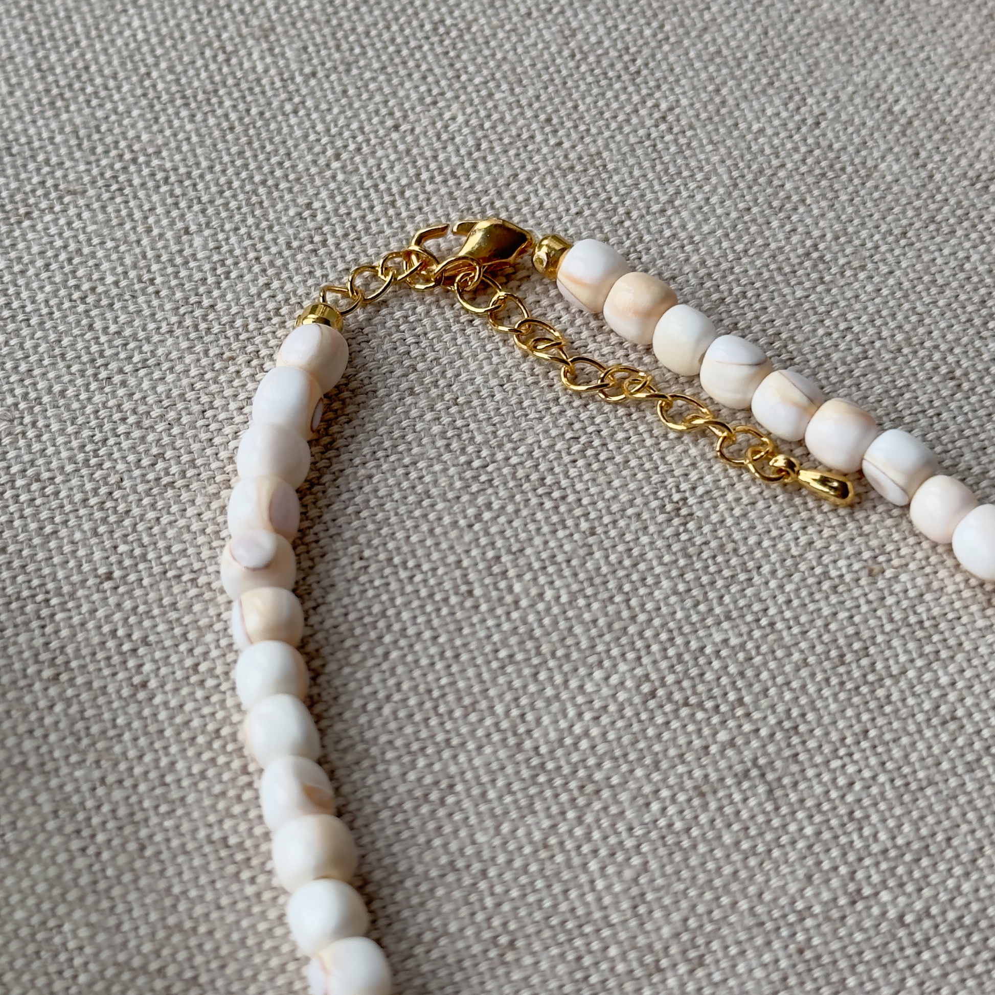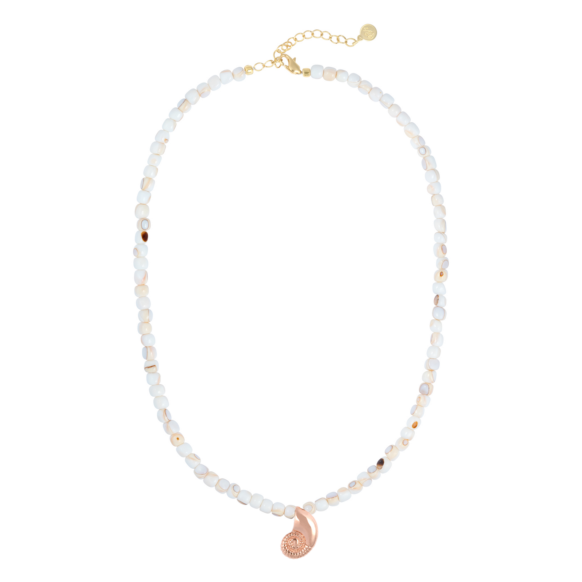 • Materials: 22K rose gold vermeil nautilus shell pendant, Luhuanus sea shell beads, gold plated components