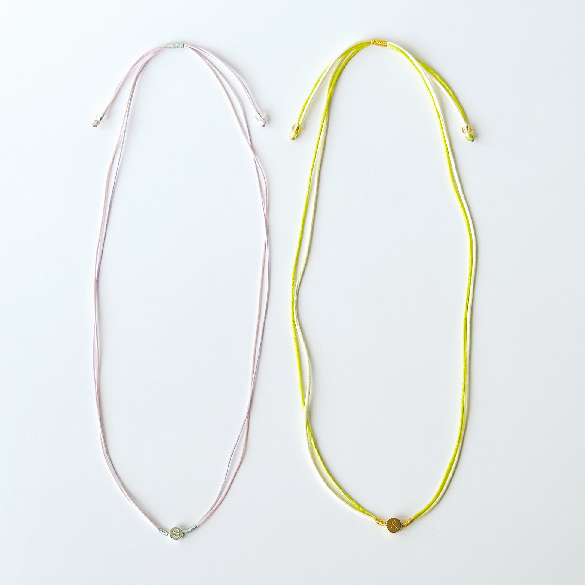 Versatile corded necklaces that can be tripled as a bracelet or doubled as an anklet. This style can be personalized with your initial (please indicate the letter in the "special instructions" section of shopping cart)