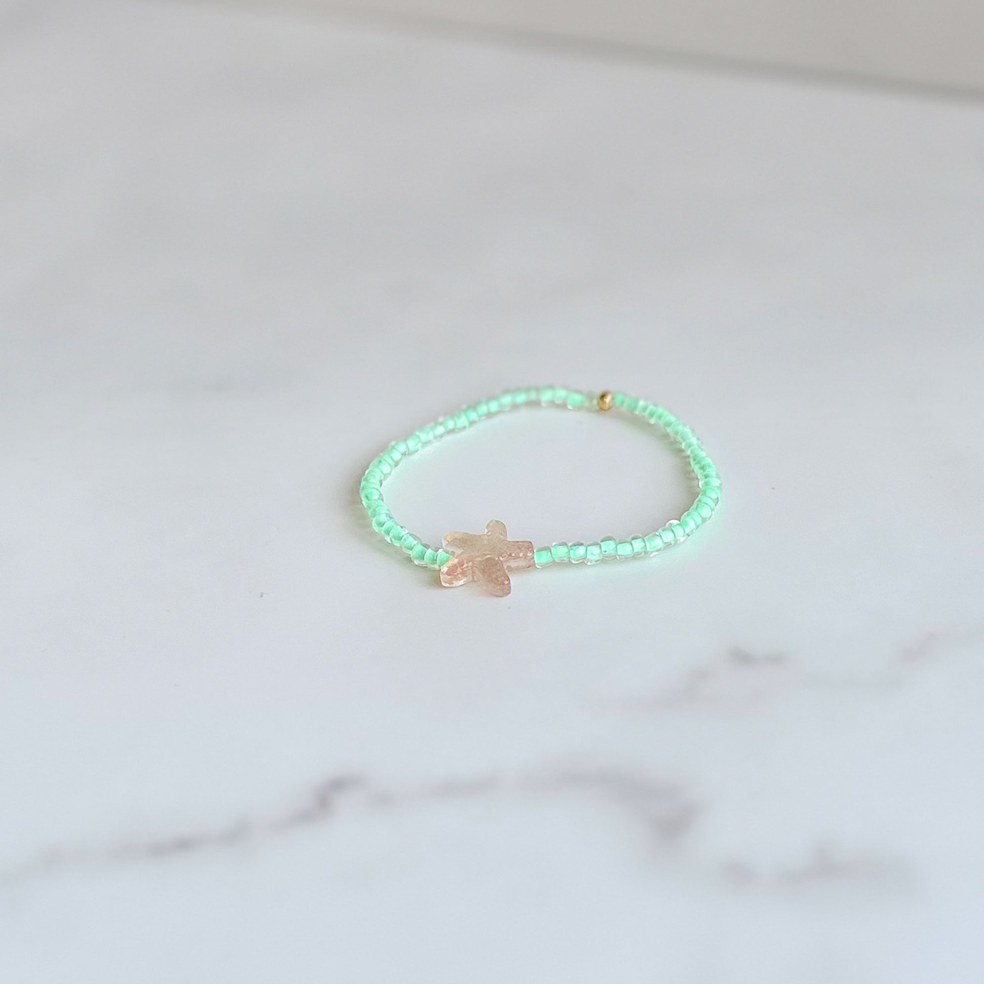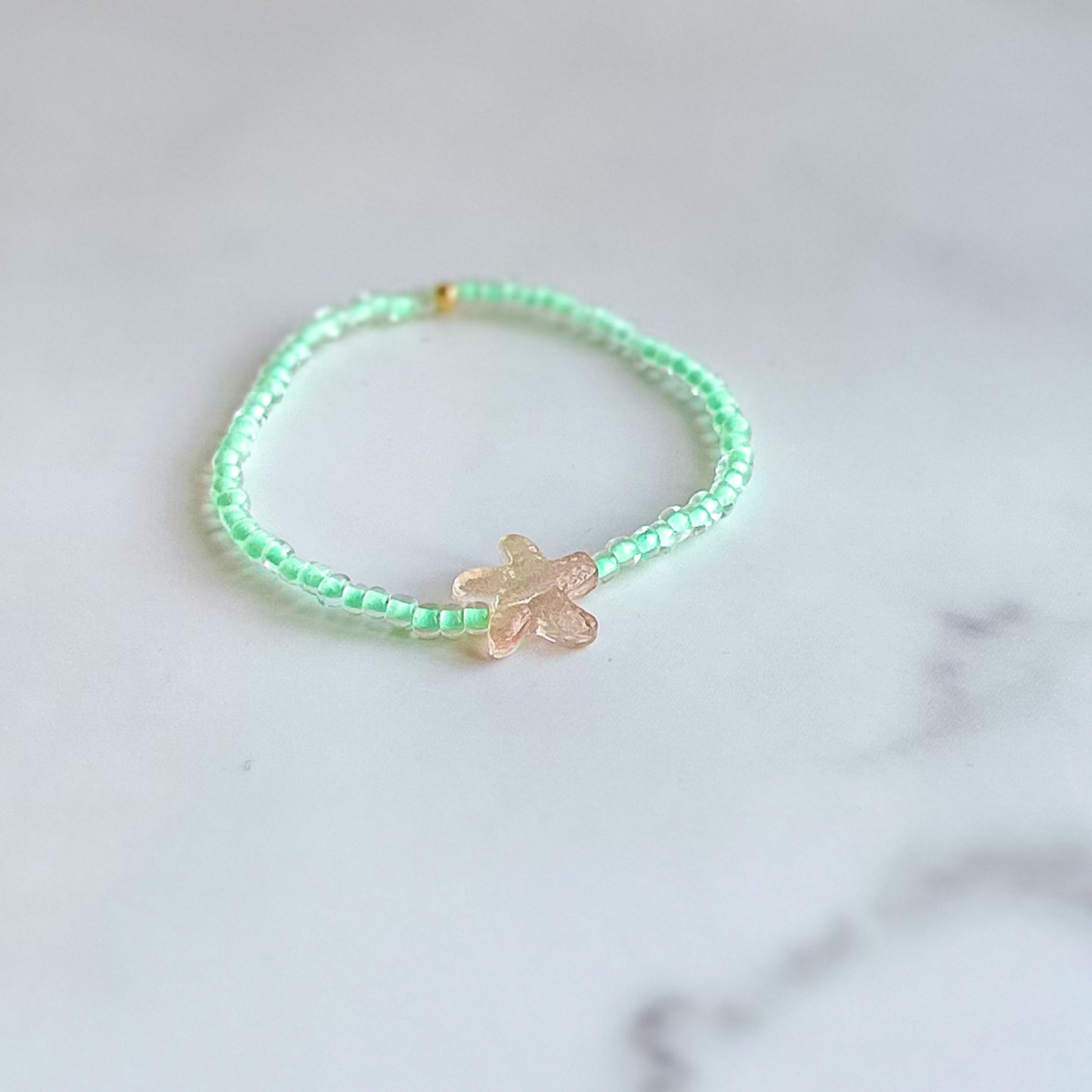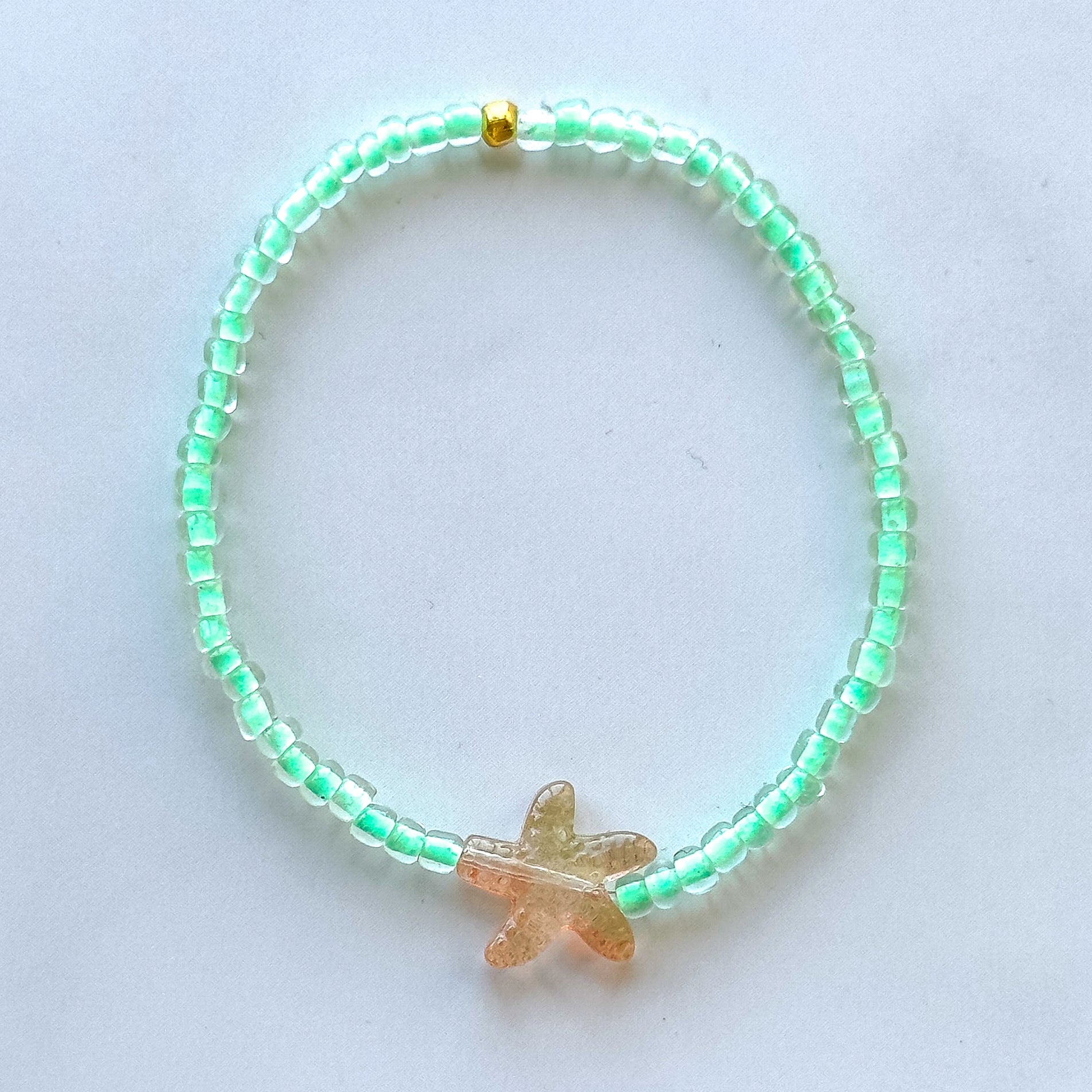 - Handmade glass seed beaded stretch bracelet, accented with an ombre glass starfish charm