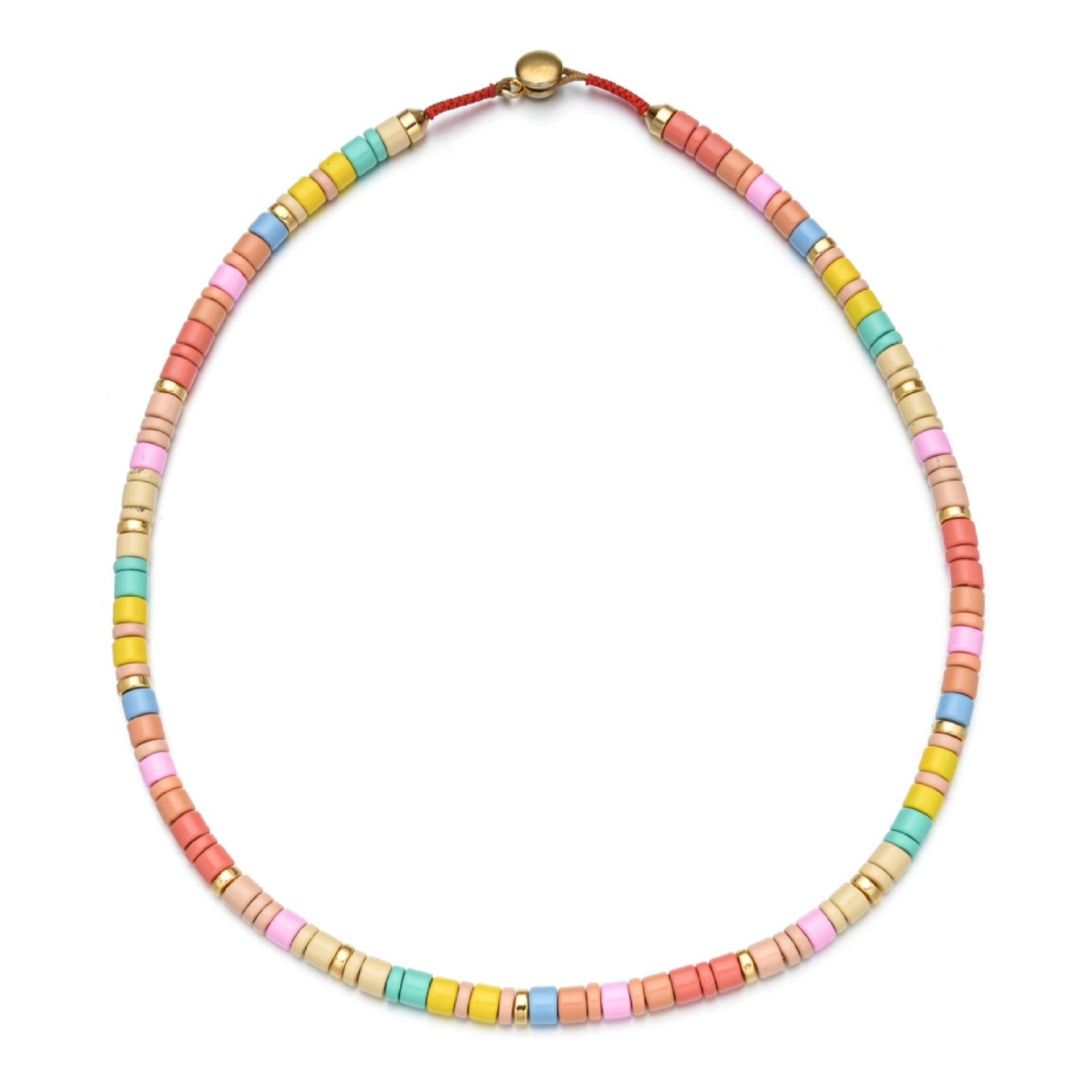 - Handmade beach necklace made with a pastel palette of tila beads.