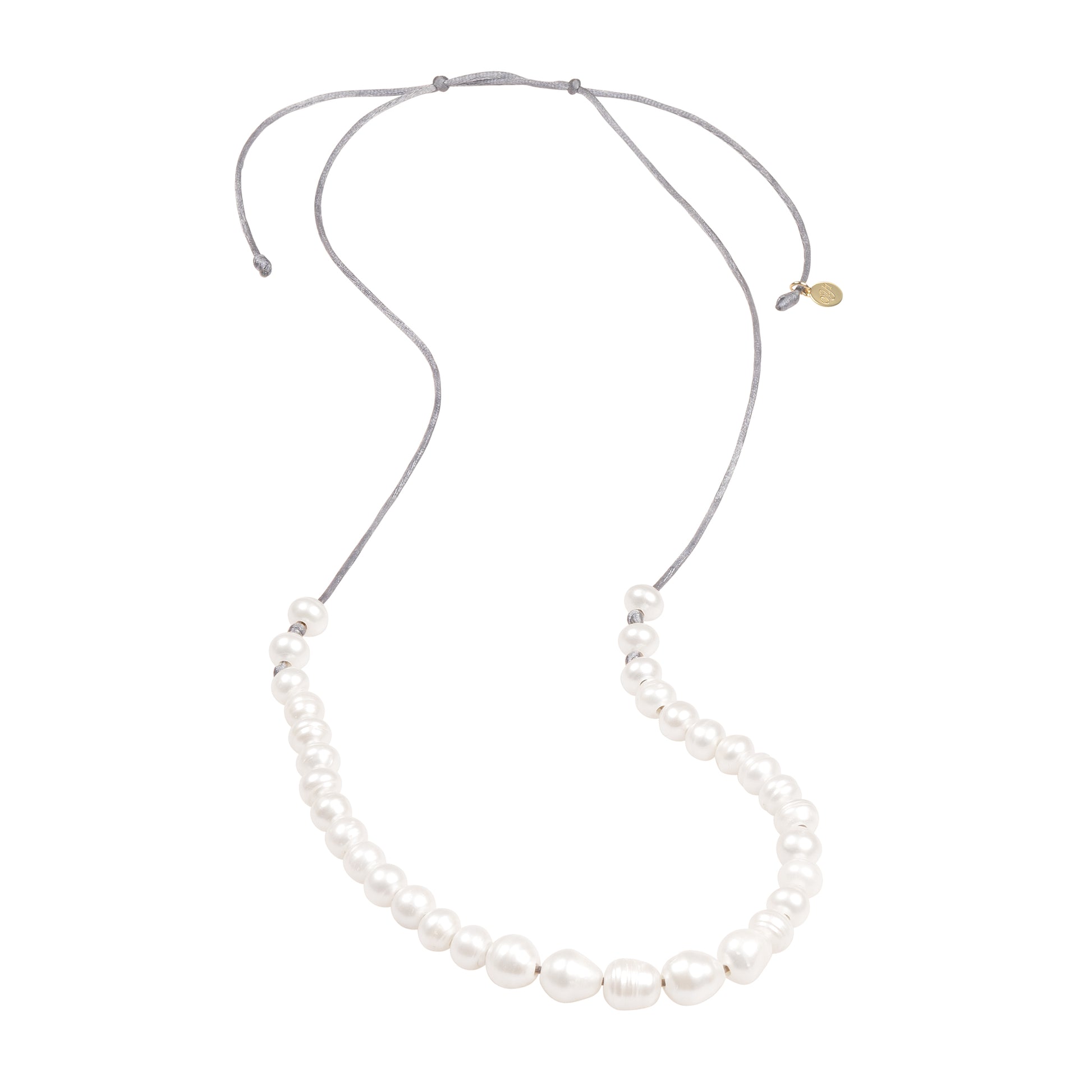 - Materials: Freshwater pearls, satin nylon cord, gold plated component